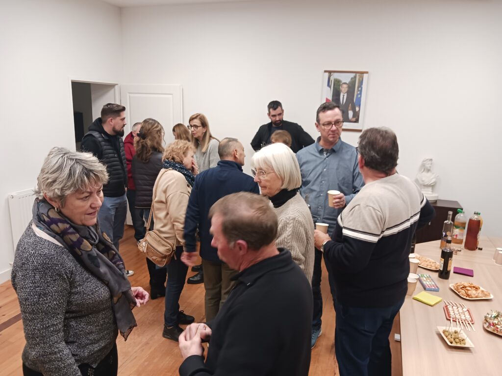 Après le discours du Maire les convives étaient heureux de se retrouver pour des échanges informels autour d’un pot de l’amitié – pétillant, gâteaux et galettes.